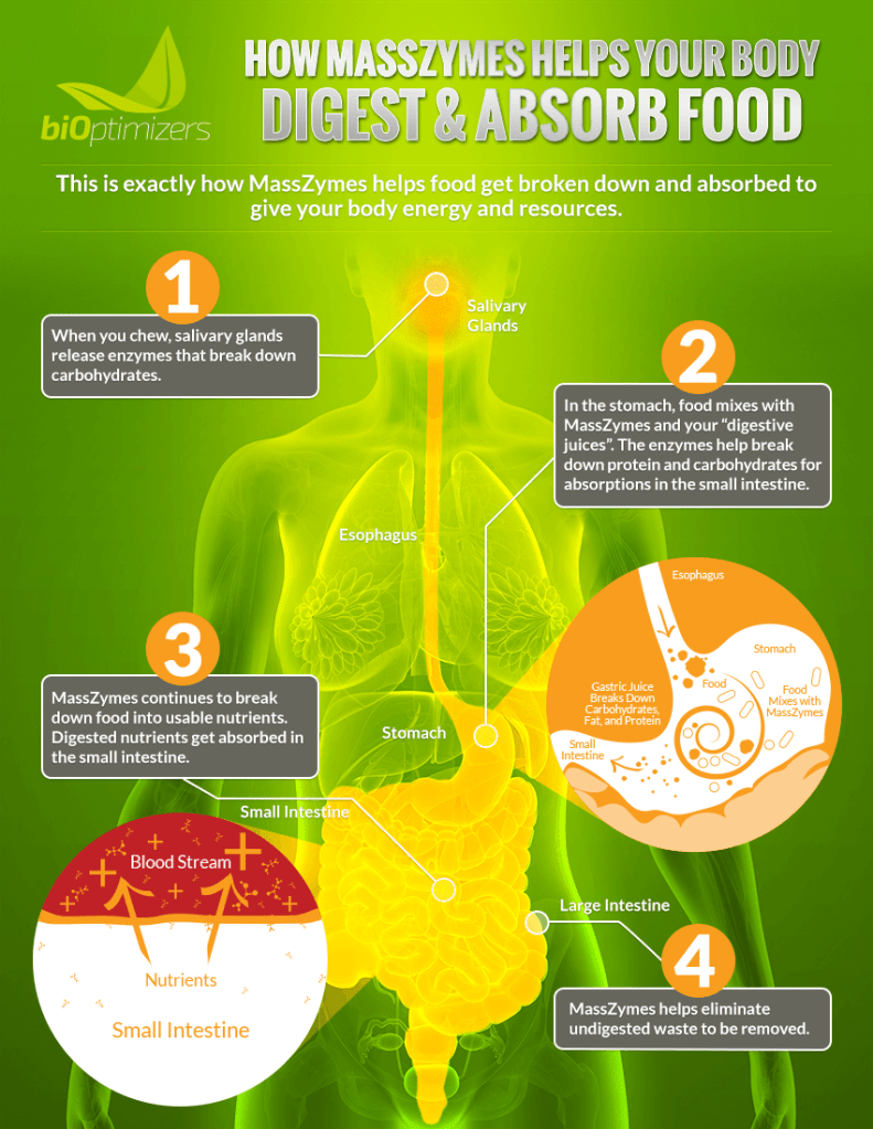 Research has shown that enzymes help you absorb nutrients from the food you eat. For instance, one study found that taking enzymes with whey protein made it significantly more absorbable.